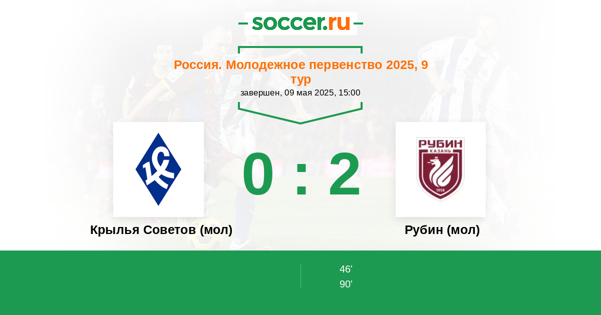 Россия. Премьер-Лига U21 14.05.2016 Крылья Советов (мол) Логотип футбольный клуб Крылья Советов (мол) (Самара) 0:2 Логотип футбольный клуб Рубин (мол) (Казань) Рубин (мол)