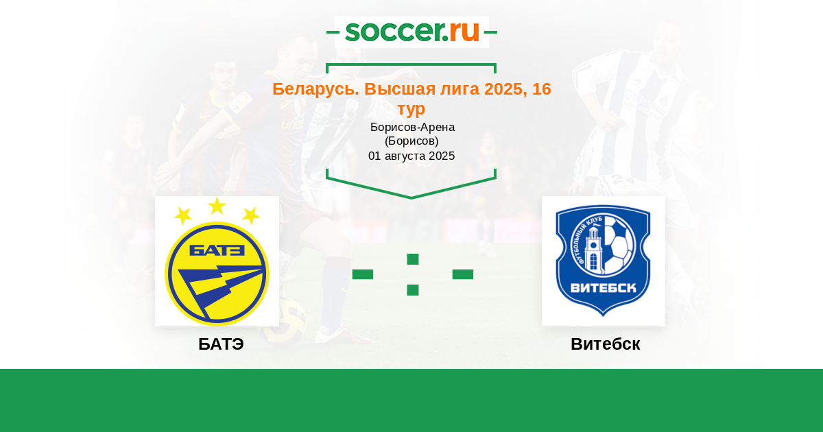 Беларусь. Высшая лига 25.06.2016 БАТЭ Логотип футбольный клуб БАТЭ (Борисов) 1:0 Логотип футбольный клуб Витебск Витебск