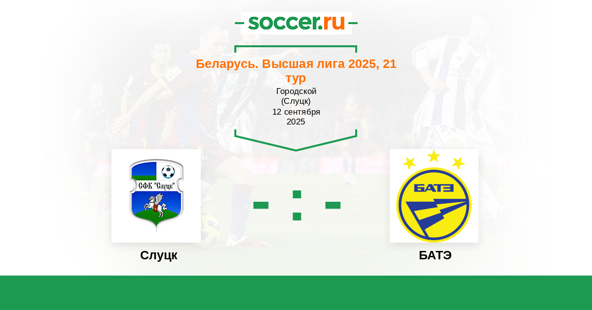 Беларусь. Высшая лига 20.09.2020 Слуцк Логотип футбольный клуб Слуцк 1:3 Логотип футбольный клуб БАТЭ (Борисов) БАТЭ