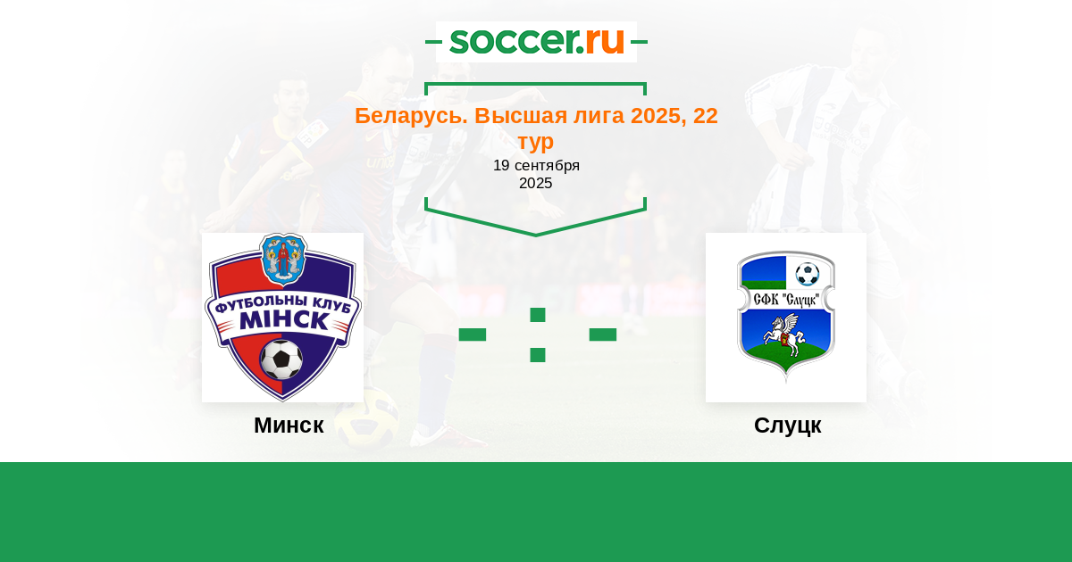 Беларусь. Высшая лига 22.09.2018 Слуцк Логотип футбольный клуб Слуцк 0:1 Логотип футбольный клуб Минск Минск