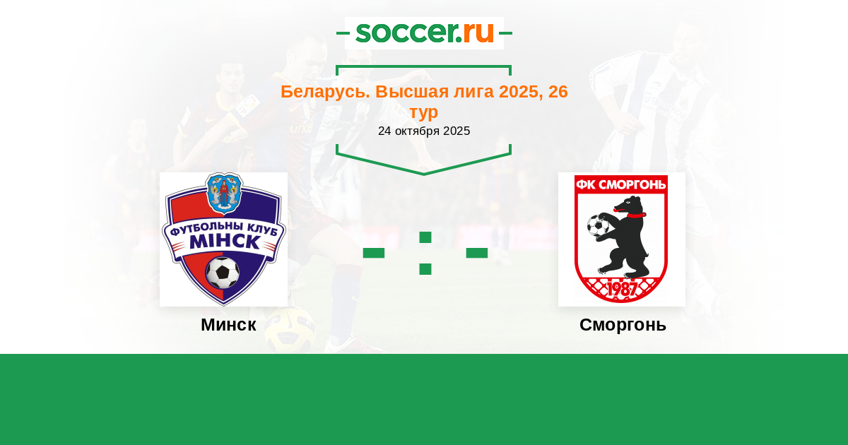 Беларусь. Высшая лига 01.06.2025 Сморгонь Логотип футбольный клуб Сморгонь 0:2 Логотип футбольный клуб Минск Минск