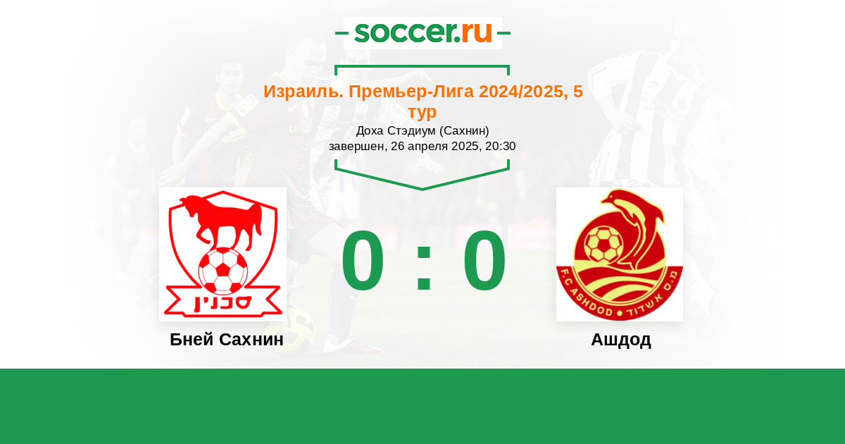 Израиль. Премьер-Лига 20.12.2025 Бней Сахнин Логотип Бней Сахнин 3:0 Логотип футбольный клуб Ашдод Ашдод