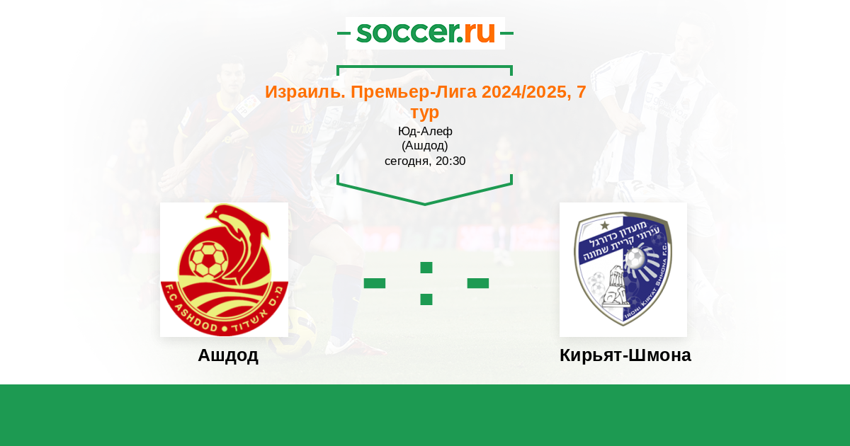 Израиль. Премьер-Лига 31.08.2024 Ашдод Логотип футбольный клуб Ашдод 2:1 Логотип футбольный клуб Кирьят-Шмона Кирьят-Шмона