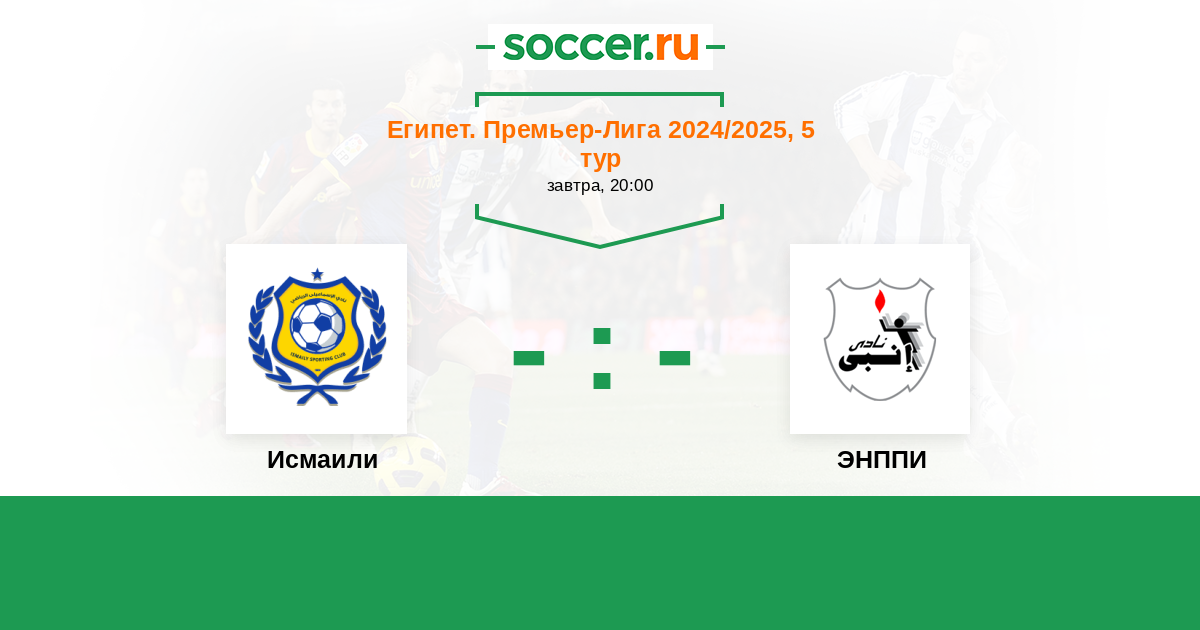 Египет. Премьер-Лига 21.09.2020 ЭНППИ Логотип футбольный клуб ЭНППИ (Каир) 1:0 Логотип футбольный клуб Исмаили (Исмаилия) Исмаили