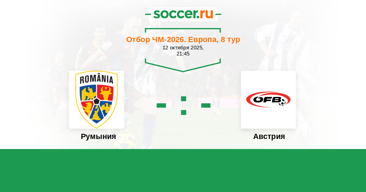 Австрия 🇦🇹, если мне не изменяет память, лидер группы - в ее активе четыре победы. Румыния 🇷🇴 не мальчик для битья, да и тренер гостей может выпустить свой ближний резерв.. Шанс у Румынии будет. Ничья.