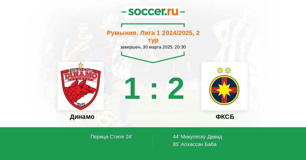 Румыния. Лига 1 23.02.2025 ФКСБ Логотип футбольный клуб ФКСБ (Бухарест) 2:1 Логотип футбольный клуб Динамо (Бухарест) Динамо