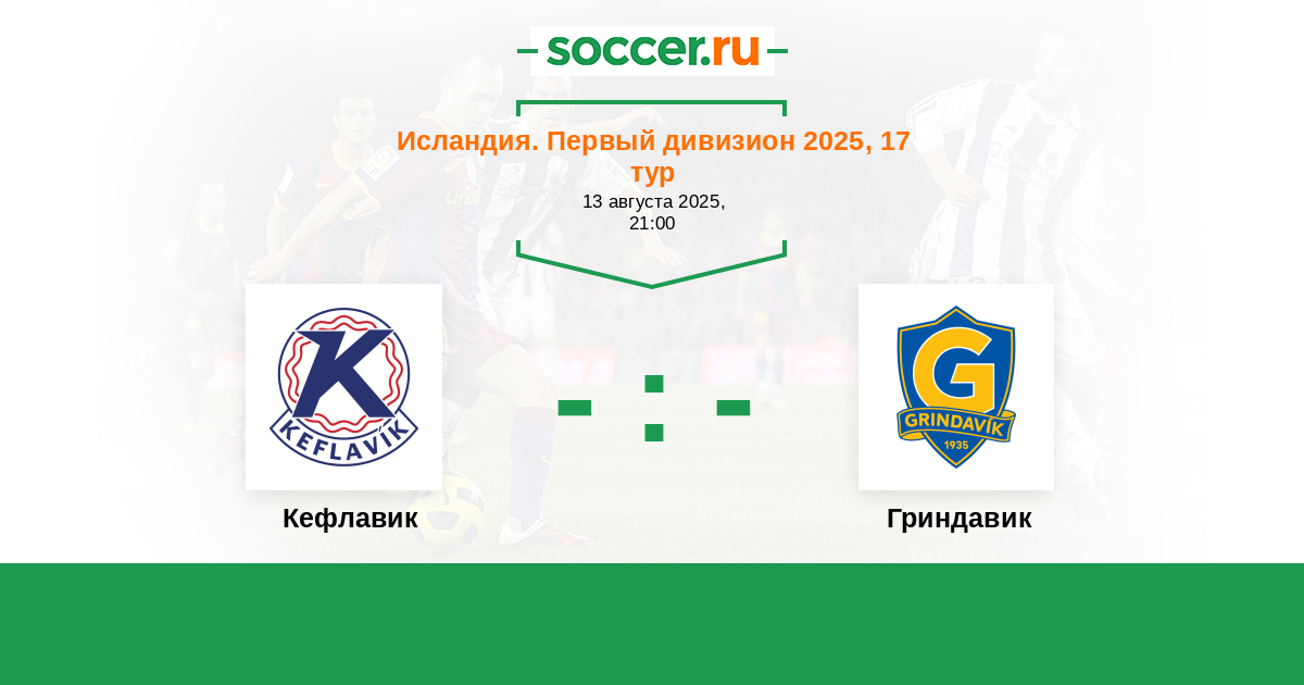 Исландия. Первый дивизион 07.07.2025 Гриндавик Логотип футбольный клуб Гриндавик 1:4 Логотип футбольный клуб Кефлавик (Рейкьянесбар) Кефлавик