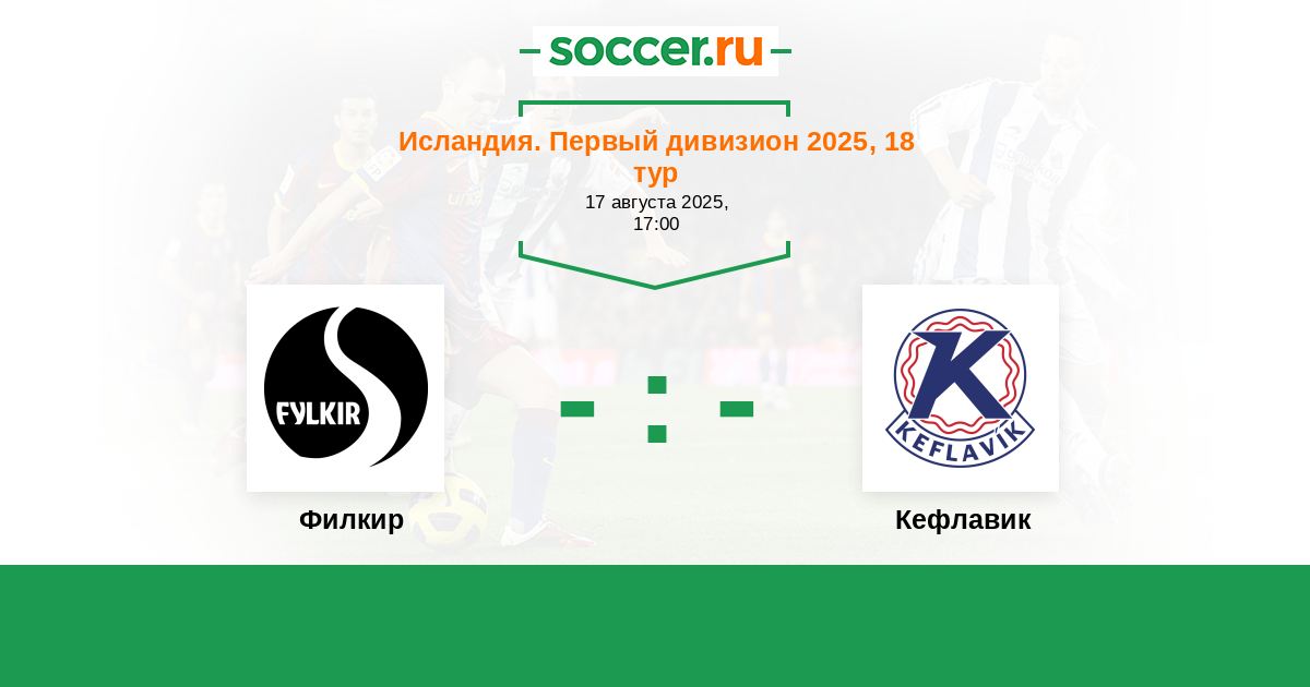 Исландия. Первый дивизион 09.06.2025 Кефлавик Логотип футбольный клуб Кефлавик (Рейкьянесбар) 1:1 Логотип футбольный клуб Филкир (Рейкьявик) Филкир