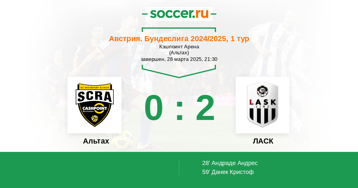 Австрия. Бундеслига 17.03.2019 Альтах Логотип футбольный клуб Альтах 1:2 Логотип футбольный клуб ЛАСК (Линц) ЛАСК