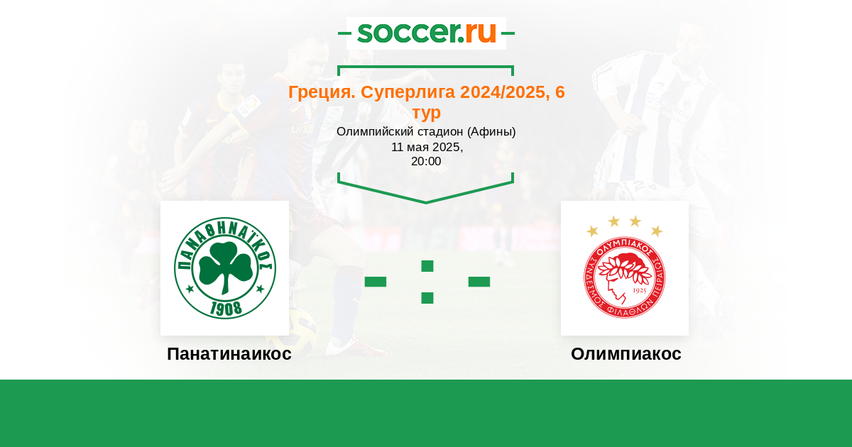 Греция. Суперлига 30.03.2025 Олимпиакос Логотип футбольный клуб Олимпиакос (Пирей) 4:2 Логотип футбольный клуб Панатинаикос (Афины) Панатинаикос