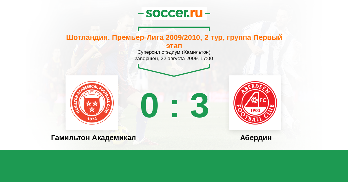 Шотландия. Премьер-Лига 06.03.2010 Гамильтон Академикал Логотип футбольный клуб Гамильтон Академикал 1:1 Логотип футбольный клуб Абердин Абердин