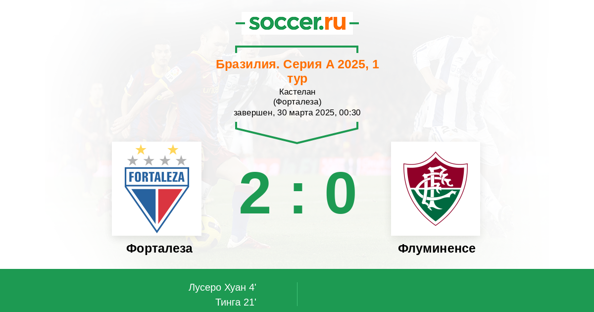 Бразилия. Серия А 26.02.2021 Флуминенсе Логотип футбольный клуб Флуминенсе (Рио-де-Жанейро) 2:0 Логотип футбольный клуб Форталеза Форталеза