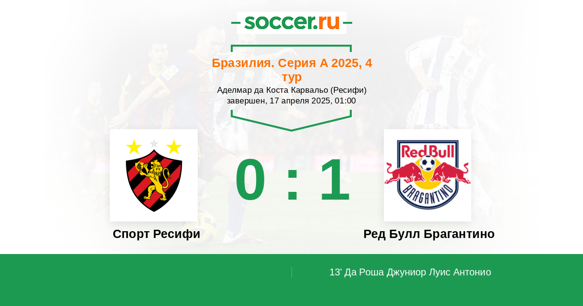 Бразилия. Серия В 28.09.2013 Ред Булл Брагантино Логотип футбольный клуб Ред Булл Брагантино (Браганса-Паулиста) 1:2 Логотип футбольный клуб Спорт Ресифи Спорт Ресифи