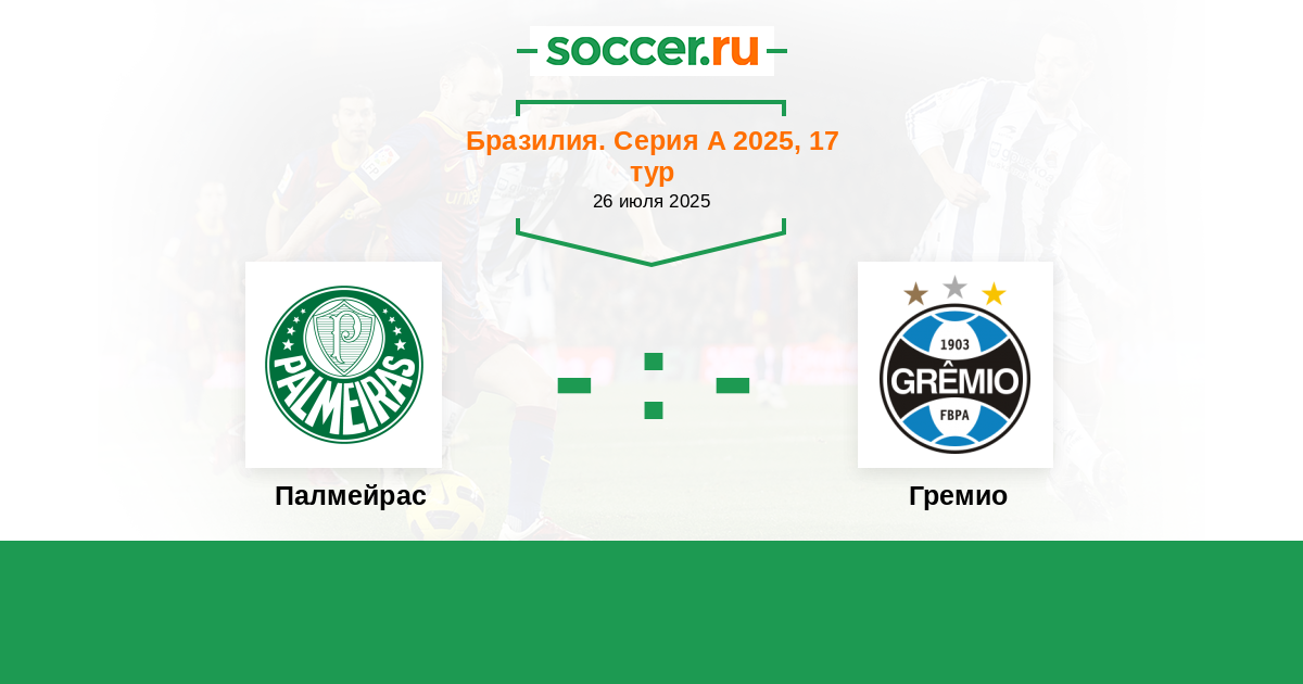 Бразилия. Серия А 01.07.2017 Палмейрас Логотип футбольный клуб Палмейрас (Сан-Паулу) 1:0 Логотип футбольный клуб Гремио (Порту-Алегри) Гремио