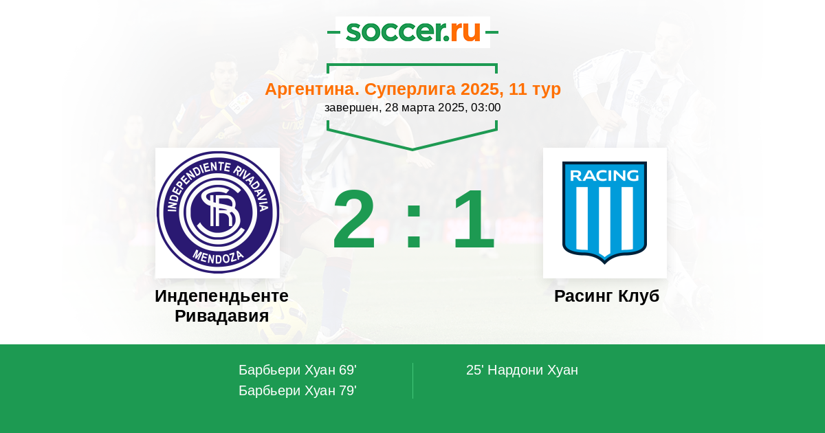 Индепендьенте Ривадавия 1:2 0:0 1:2