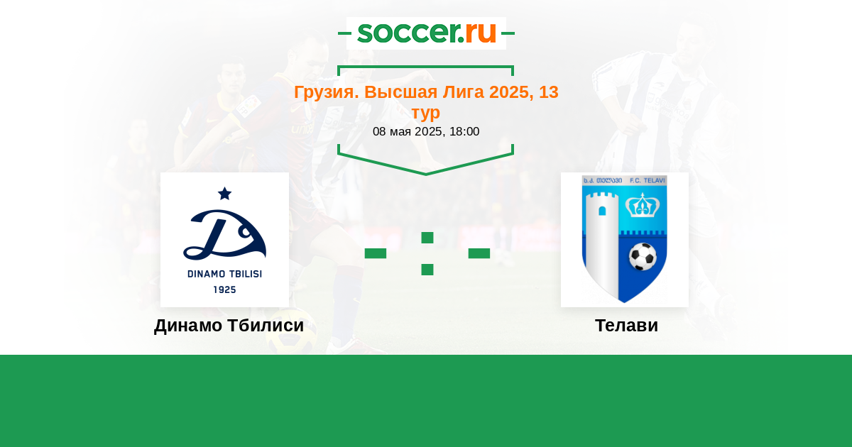 Грузия. Высшая лига 26.04.2024 Динамо Тбилиси Логотип футбольный клуб Динамо Тбилиси 0:0 Логотип футбольный клуб Телави Телави