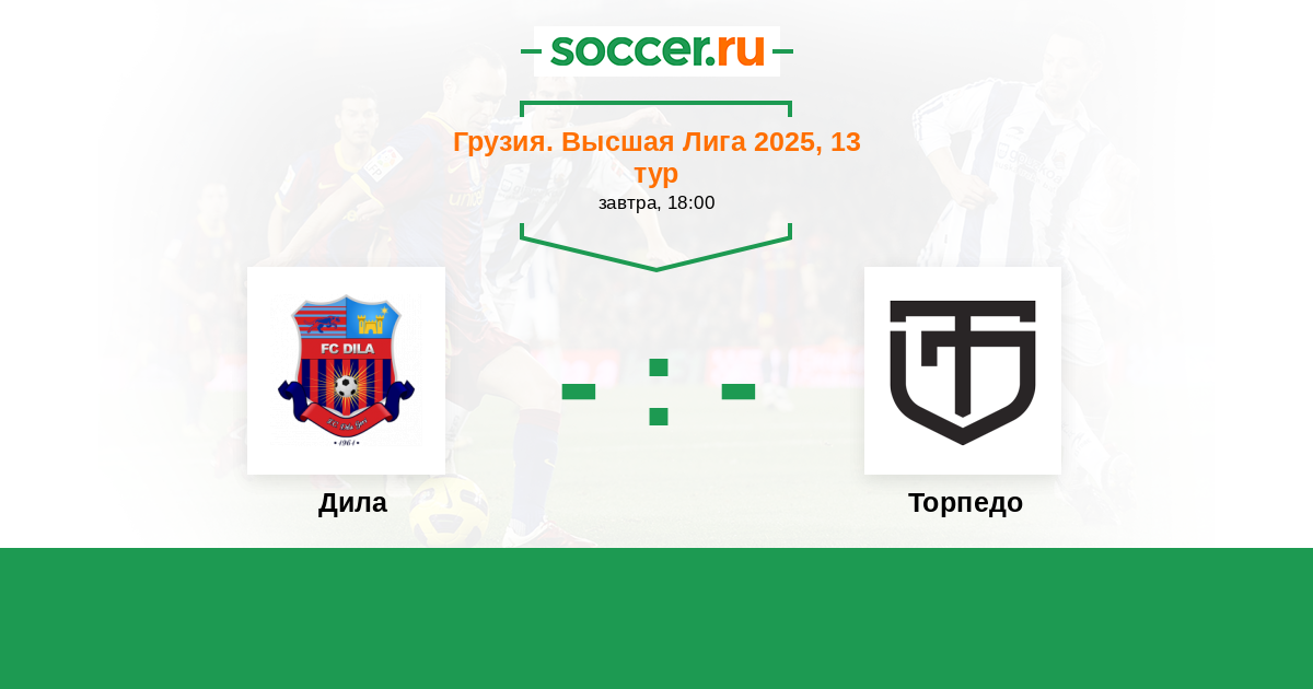 Грузия. Высшая лига 12.09.2021 Дила Логотип футбольный клуб Дила (Гори) 1:2 Логотип футбольный клуб Торпедо (Кутаиси) Торпедо