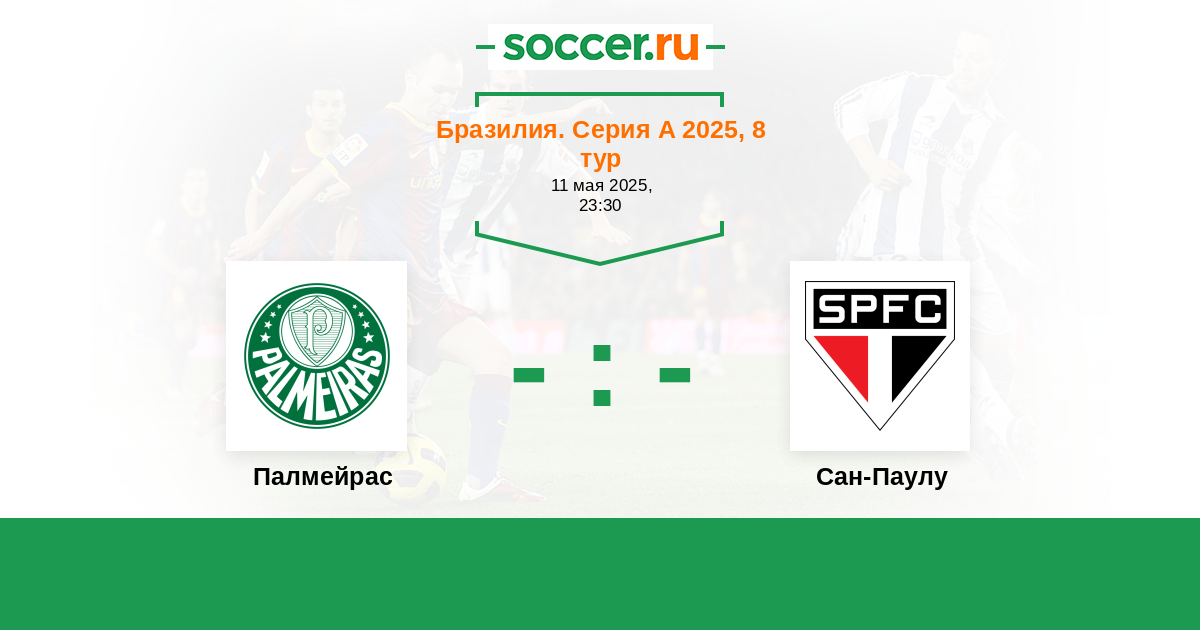 Бразилия. Серия А 18.08.2024 Палмейрас Логотип футбольный клуб Палмейрас (Сан-Паулу) 2:1 Логотип футбольный клуб Сан-Паулу Сан-Паулу