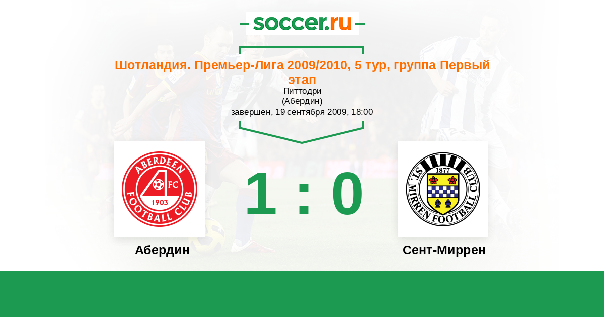 Шотландия. Премьер-Лига 08.05.2010 Сент-Миррен Логотип футбольный клуб Сент-Миррен (Пейсли) 0:1 Логотип футбольный клуб Абердин Абердин