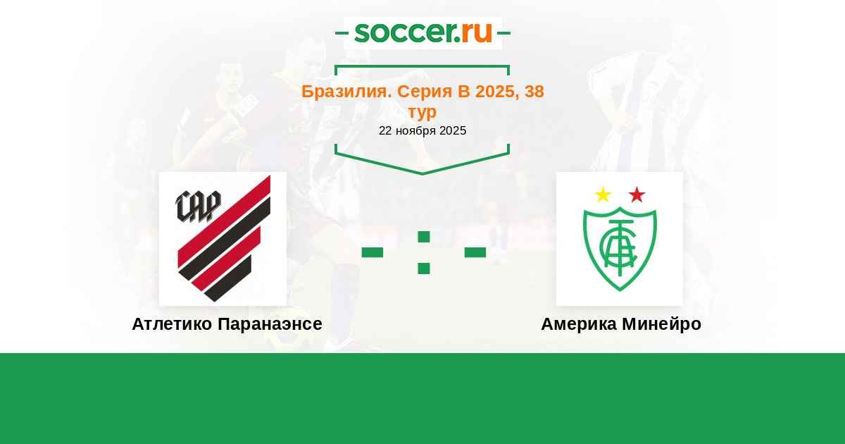Бразилия. Серия В 28.07.2025 Америка Минейро Логотип футбольный клуб Америка Минейро (Белу-Оризонти) 2:2 Логотип футбольный клуб Атлетико Паранаэнсе (Куритиба) Атлетико Паранаэнсе