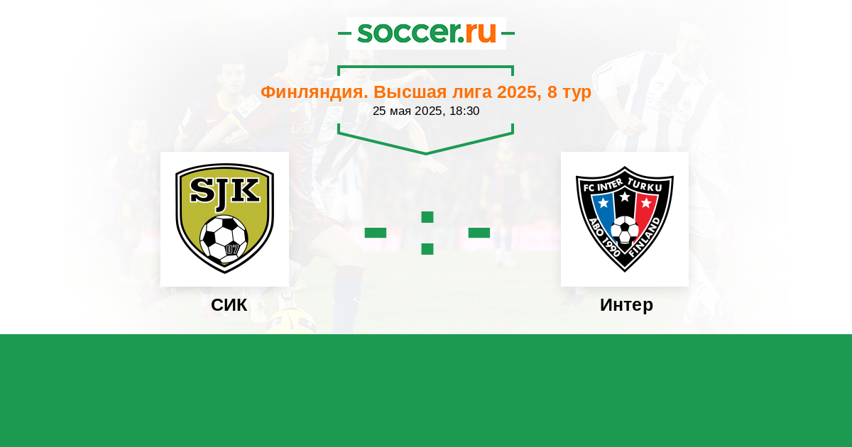 Финляндия. Высшая лига 27.07.2025 Интер Логотип футбольный клуб Интер (Турку) 4:1 Логотип футбольный клуб СИК (Сейняйоки) СИК