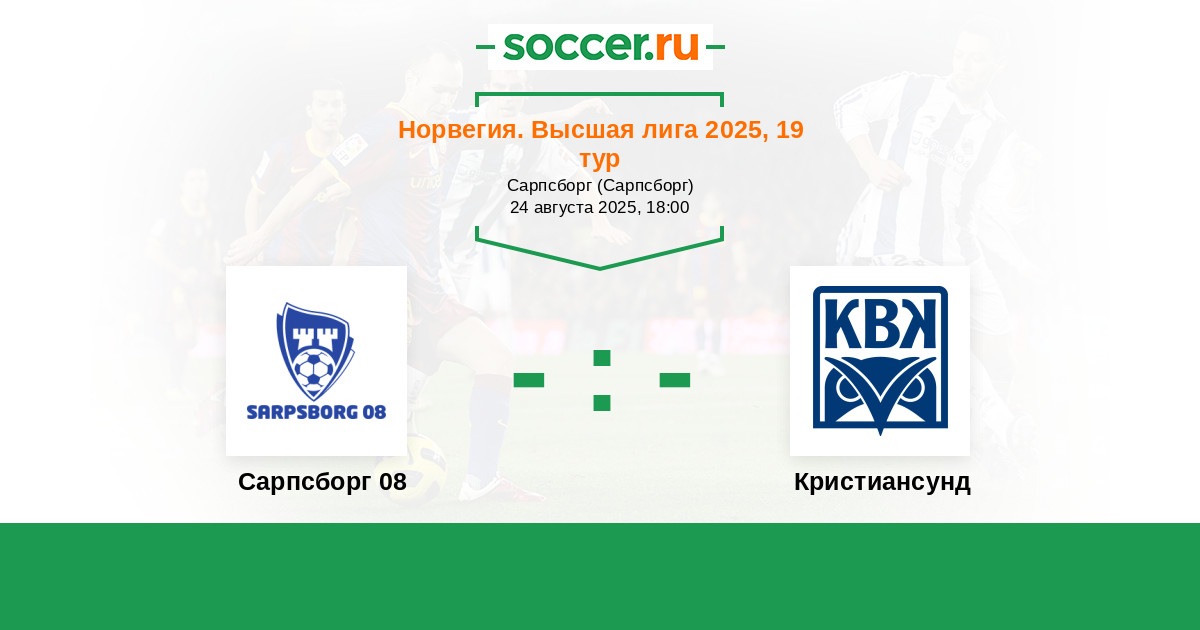 Норвегия. Высшая лига 15.09.2024 Сарпсборг 08 Логотип футбольный клуб Сарпсборг 08 0:2 Логотип футбольный клуб Кристиансунд Кристиансунд