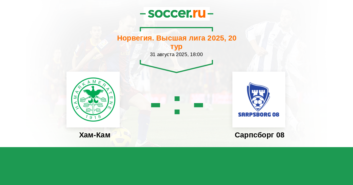 Норвегия. Высшая лига 20.10.2024 Хам-Кам Логотип футбольный клуб Хам-Кам (Хамар) 0:2 Логотип футбольный клуб Сарпсборг 08 Сарпсборг 08