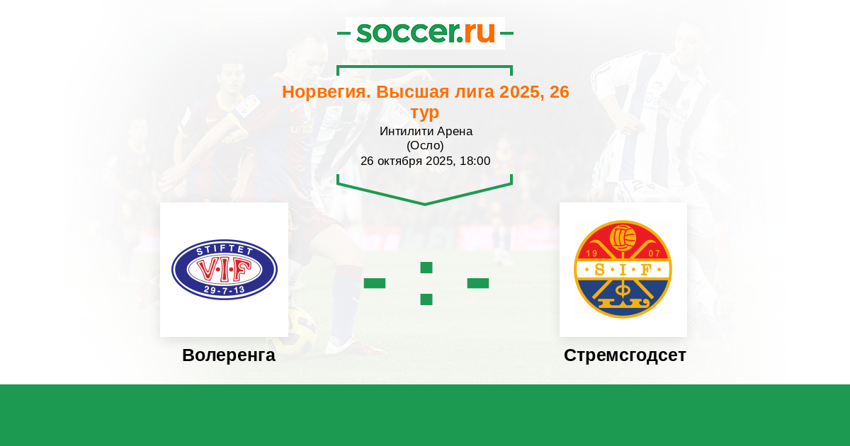 Норвегия. Высшая лига 26.07.2020 Волеренга Логотип футбольный клуб Волеренга (Осло) 2:0 Логотип футбольный клуб Стремсгодсет (Драммен) Стремсгодсет