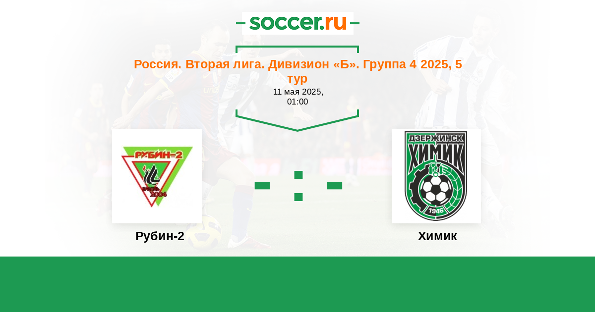 Россия. Вторая лига. Дивизион «Б». Группа 4 17.08.2025 Химик Логотип футбольный клуб Химик (Дзержинск) 3:1 Логотип футбольный клуб Рубин-2 (Казань) Рубин-2