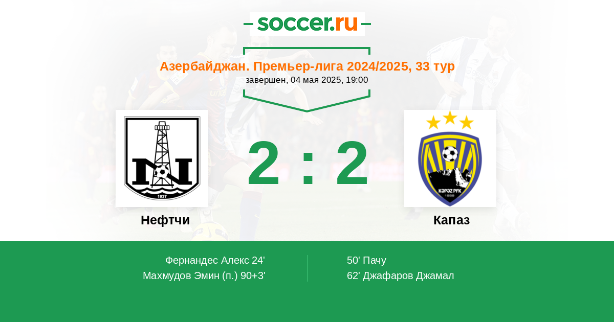 Азербайджан. Премьер-Лига 20.05.2018 Кяпаз Логотип футбольный клуб Кяпаз (Гянджа) 1:2 Логотип футбольный клуб Нефтчи (Баку) Нефтчи