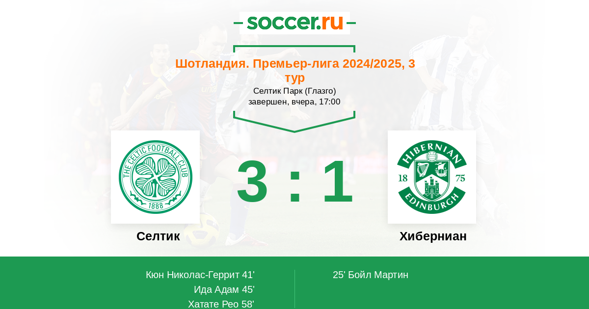 Шотландия. Премьер-Лига 07.12.2024 Селтик Логотип футбольный клуб Селтик (Глазго) 3:0 Логотип футбольный клуб Хиберниан (Эдинбург) Хиберниан