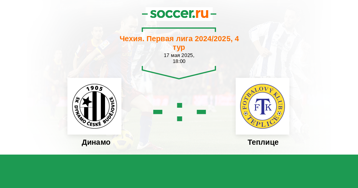 Чехия. Первая Лига 25.07.2021 Динамо Логотип футбольный клуб Динамо (Ческе-Будеевице) 1:0 Логотип футбольный клуб Теплице Теплице
