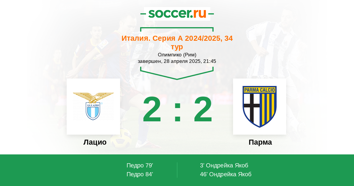 Италия. Серия А 01.12.2024 Парма Логотип футбольный клуб Парма 3:1 Логотип футбольный клуб Лацио (Рим) Лацио