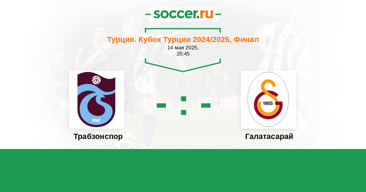 Турция. Суперлига 10.05.2025 Трабзонспор Логотип футбольный клуб Трабзонспор 0:2 Логотип футбольный клуб Галатасарай (Стамбул) Галатасарай