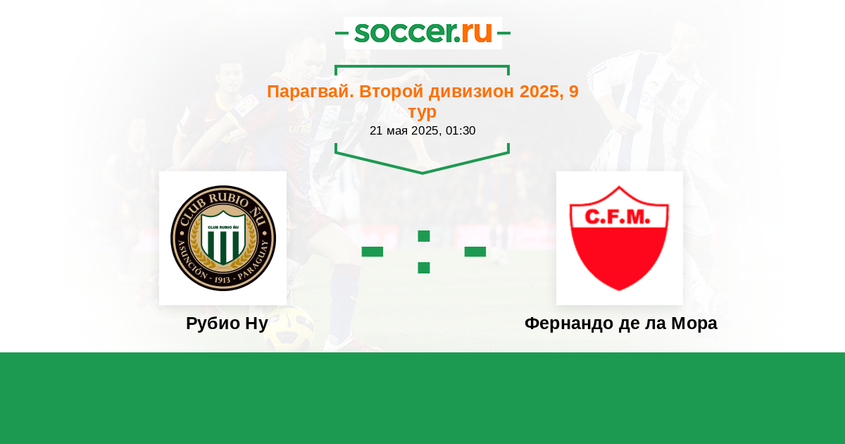 Парагвай. Второй дивизион 28.04.2021 Рубио Ну Логотип футбольный клуб Рубио Ну (Асунсьон) 2:1 Логотип футбольный клуб Фернандо де ла Мора Фернандо де ла Мора