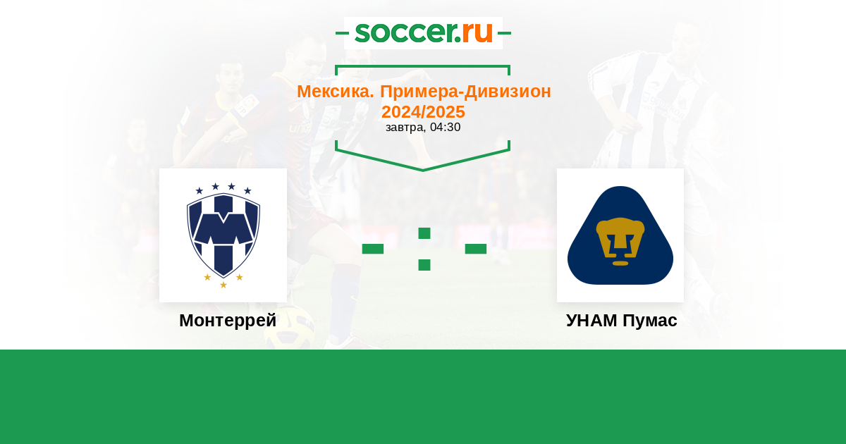Мексика. Примера-Дивизион 19.10.2025 Монтеррей Логотип футбольный клуб Монтеррей 1:1 Логотип футбольный клуб УНАМ Пумас (Мехико) УНАМ Пумас