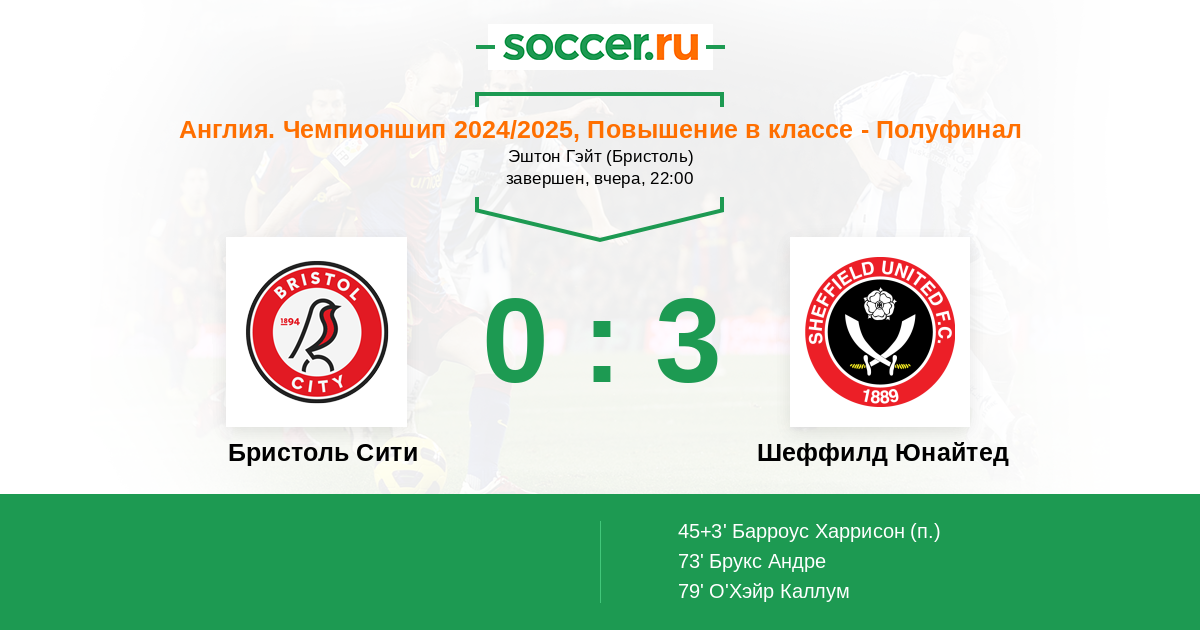 Англия. Чемпионшип 12.05.2025 Шеффилд Юнайтед Логотип футбольный клуб Шеффилд Юнайтед 3:0 Логотип футбольный клуб Бристоль Сити Бристоль Сити