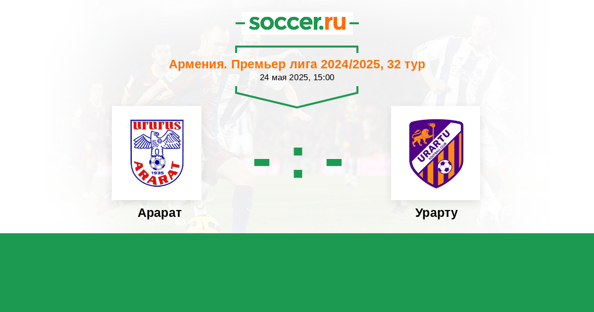 Армения. Премьер-лига 24.05.2024 Урарту Логотип футбольный клуб Урарту (Ереван) 1:1 Логотип футбольный клуб Арарат (Ереван) Арарат