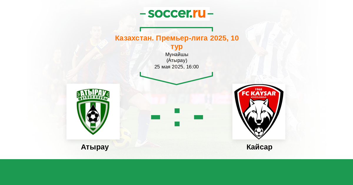 Казахстан. Премьер-лига 19.05.2018 Кайсар Логотип футбольный клуб Кайсар (Кызылорда) 0:0 Логотип футбольный клуб Атырау Атырау