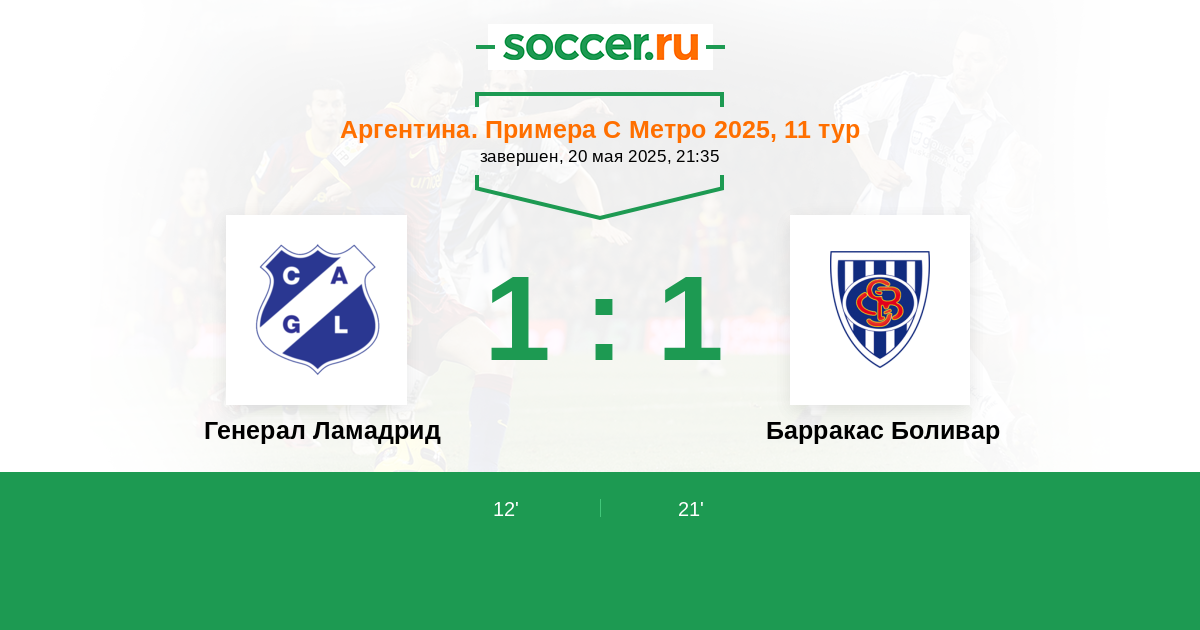 Аргентина. Примера С Метро 02.09.2025 Барракас Боливар Логотип футбольный клуб Барракас Боливар 2:2 Логотип Генерал Ламадрид (Буэнос-Айрес) Генерал Ламадрид