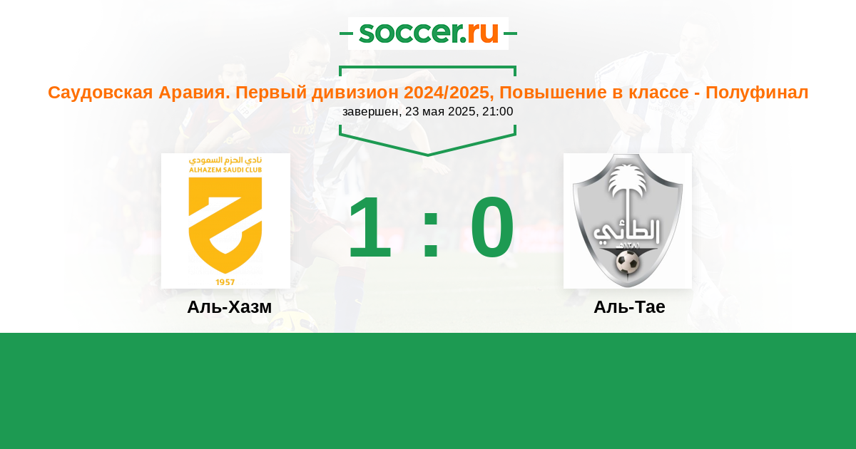 Саудовская Аравия. Первый дивизион 17.09.2024 Аль-Тае Логотип футбольный клуб Аль-Тае (Хаиль) 1:2 Логотип футбольный клуб Аль-Хазм (Эр-Расс) Аль-Хазм