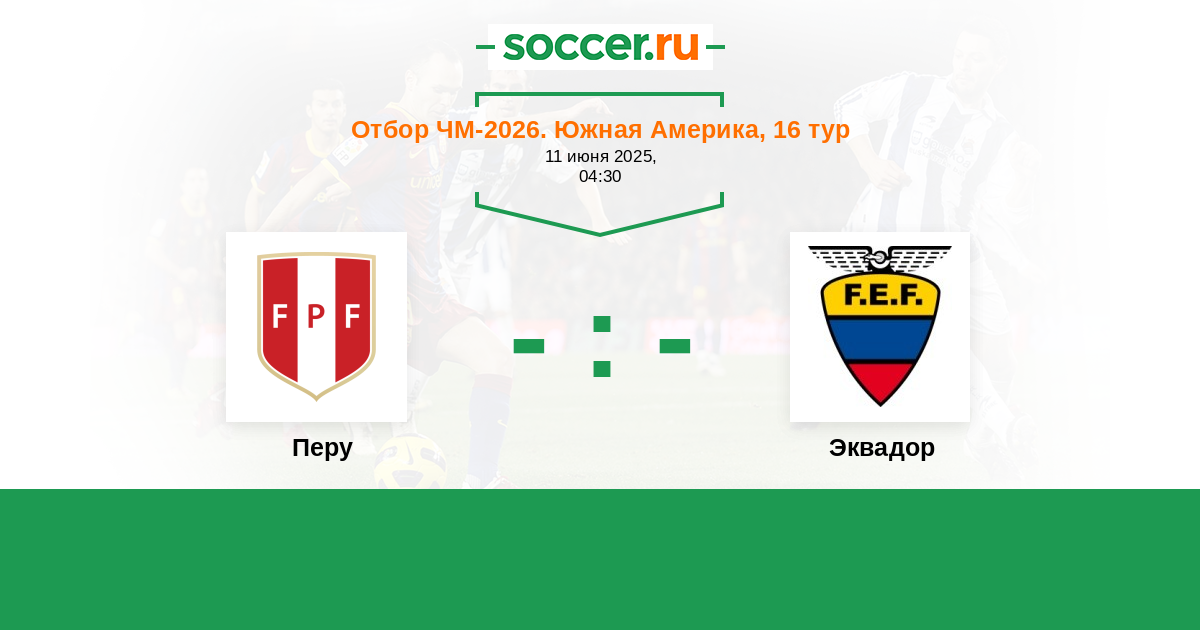 Отбор ЧМ. Южная Америка 07.09.2016 Перу Логотип Перу 2:1 Логотип Эквадор Эквадор