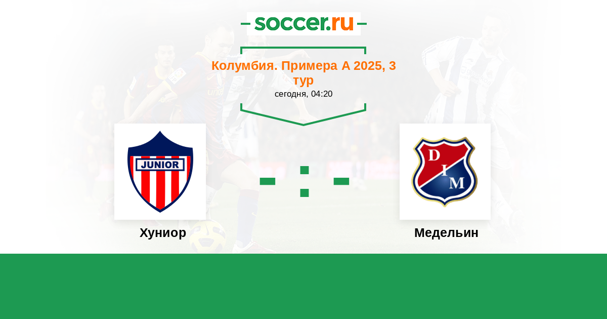 Колумбия. Примера А 07.04.2025 Хуниор Логотип футбольный клуб Хуниор (Барранкилья) 1:0 Логотип футбольный клуб Медельин Медельин