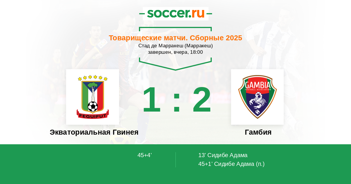 Экваториальная Гвинея 1:0 1:0 0:0