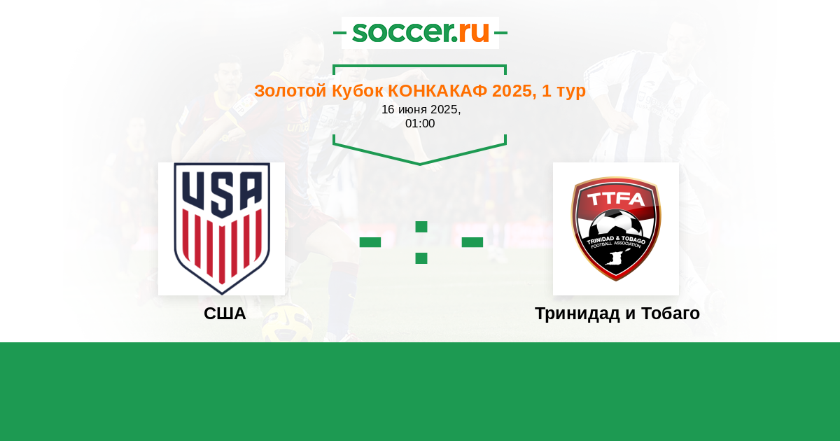 Золотой кубок КОНКАКАФ 23.06.2019 США Логотип США 6:0 Логотип Тринидад и Тобаго Тринидад и Тобаго