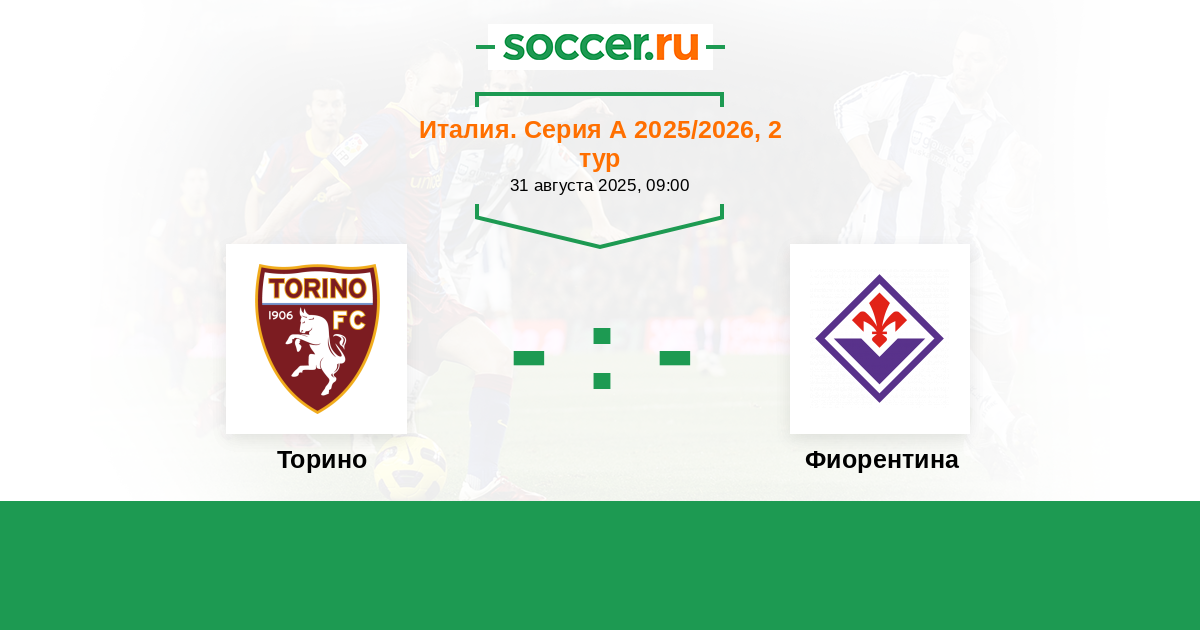 Италия. Серия А 19.09.2020 Фиорентина Логотип футбольный клуб Фиорентина (Флоренция) 1:0 Логотип футбольный клуб Торино (Турин) Торино