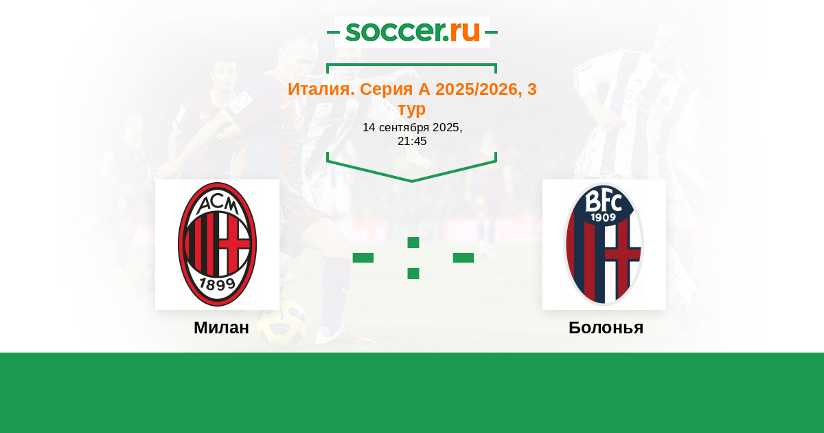 Италия. Серия А 21.09.2020 Милан Логотип футбольный клуб Милан 2:0 Логотип футбольный клуб Болонья Болонья