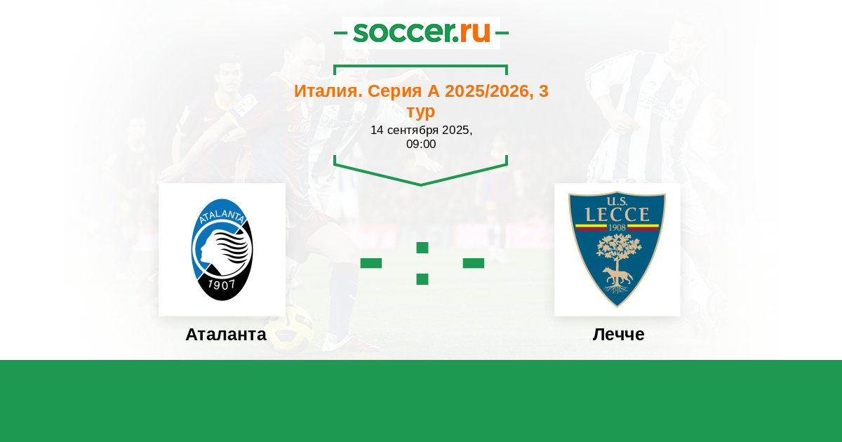 Италия. Серия А 19.08.2024 Лечче Логотип футбольный клуб Лечче 0:4 Логотип футбольный клуб Аталанта (Бергамо) Аталанта
