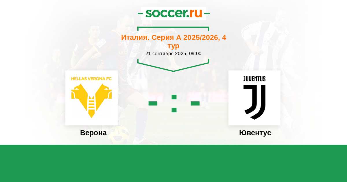 Италия. Серия А 26.08.2024 Верона Логотип футбольный клуб Верона 0:3 Логотип футбольный клуб Ювентус (Турин) Ювентус