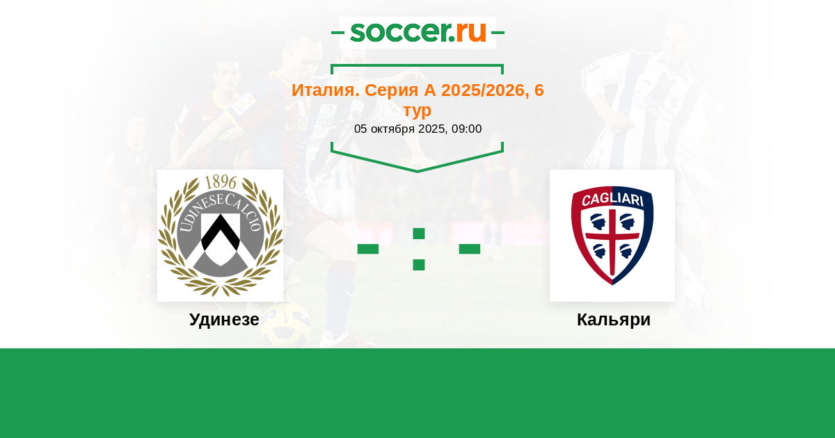 Италия. Серия А 17.09.2023 Кальяри Логотип футбольный клуб Кальяри 0:0 Логотип футбольный клуб Удинезе Удинезе
